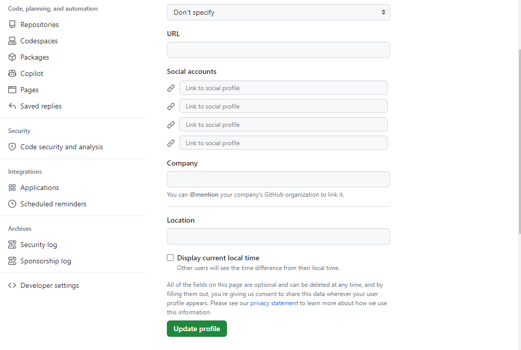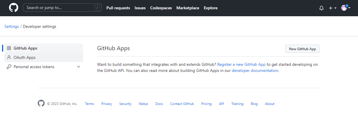 개인 토큰을 발급 받으려면 github 계정으로 로그인한 후에 settings > Developer settings 에 접속