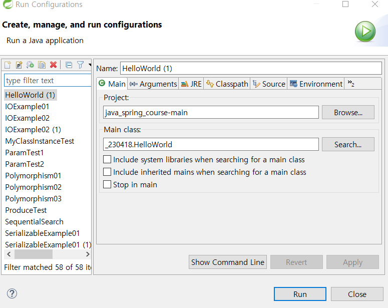 설정 후에는 별문제 없이 Hello World 가 출력된다.