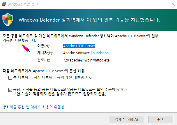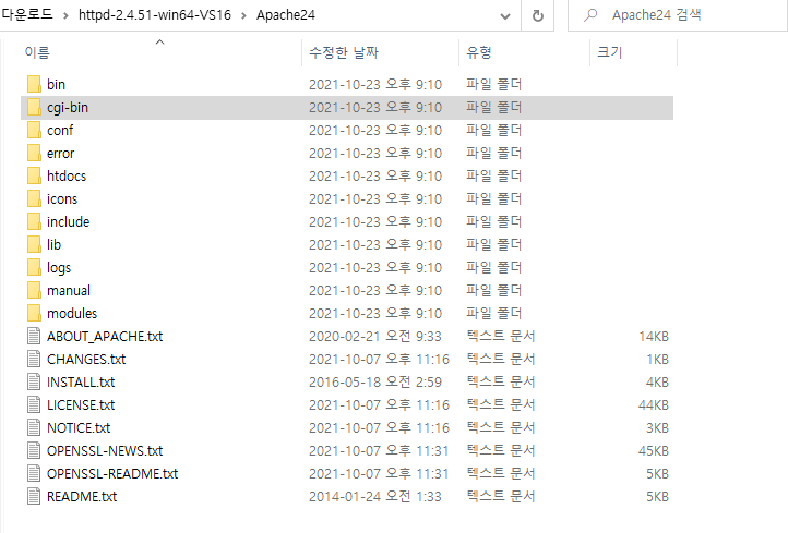 이제 아파치 웹서버를 윈도우10에 설치해 보자