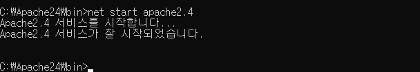 C:\Apache24\bin 에서 도스커맨드 창으로 관리자 권한으로 실행