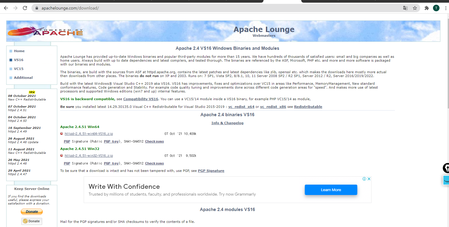 Apache 다운로드 (https://www.apachelounge.com/download/)