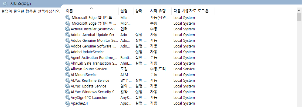윈도우 서비스에서 보겠습니다
