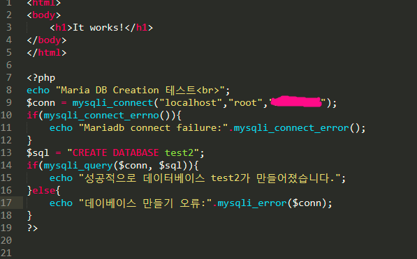 그래서 제대로 하기 위한 PHP에서 설치된 mariaDB에서 디비커넥션을 해보겠습니다