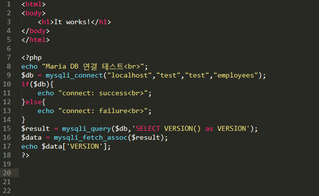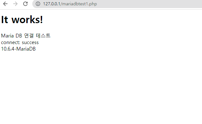 PHP 에서 진정 mariaDB에 커넥션하여 버전번호를 화면에 뿌리네요