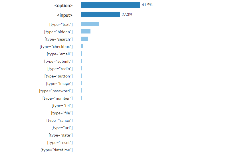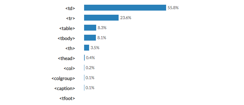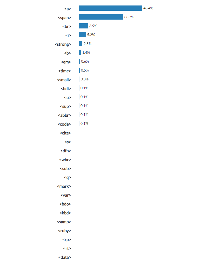 Apparently, an average web page uses thirty-two different element types: The thirty-two elements used on most pages, ordered by appearance frequency:
