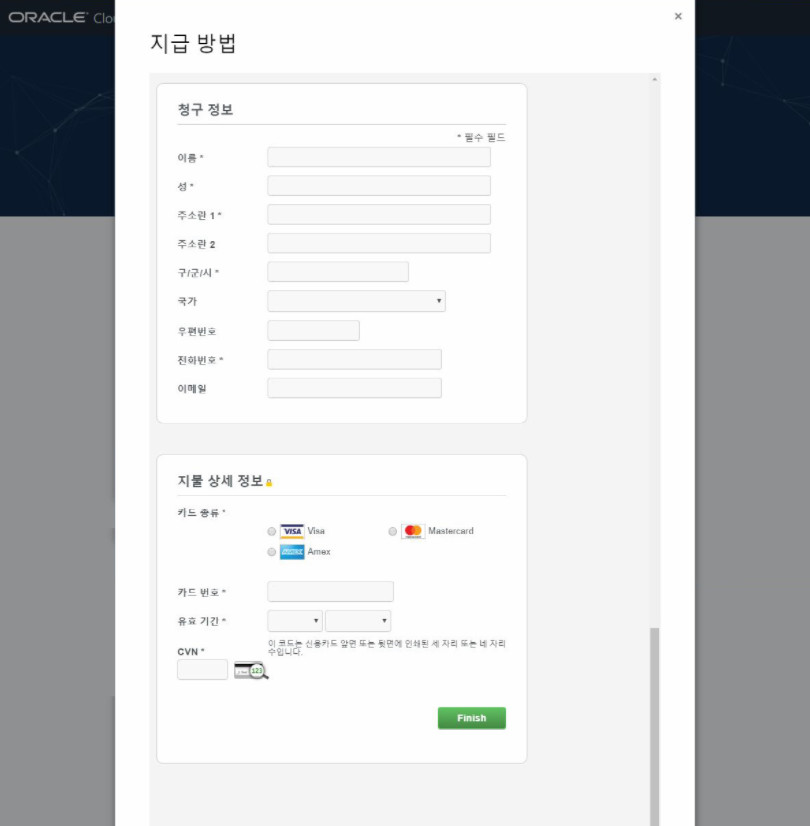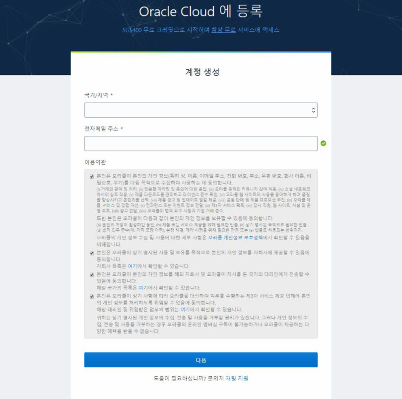 (오라클 클라우드를 사용하기 위한 회원등록)