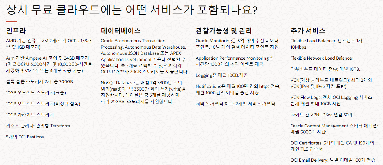 [오라클 클라우드 Free Tier 평생 무료 항목들]