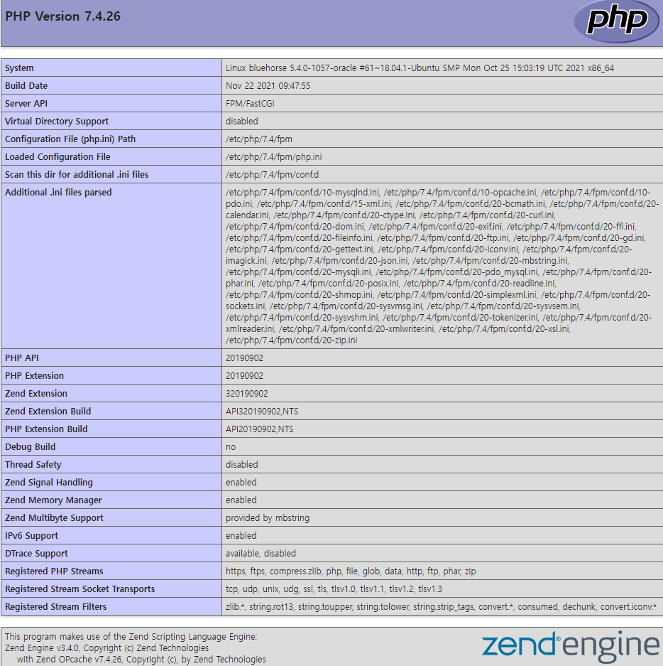 with Zend OPcache v7.4.26, Copyright (c), by Zend Technologies