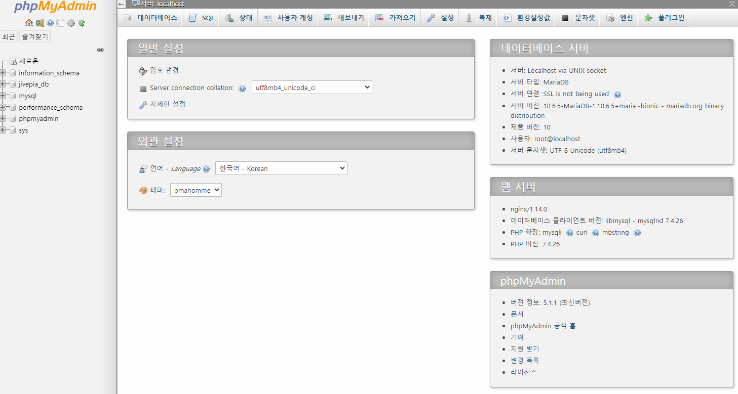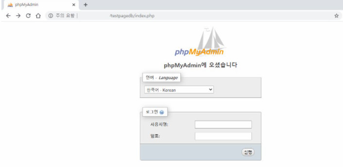 브라우져 접속은 http://도메인 또는 IP/phpmyadmin 가 되겠습니다.