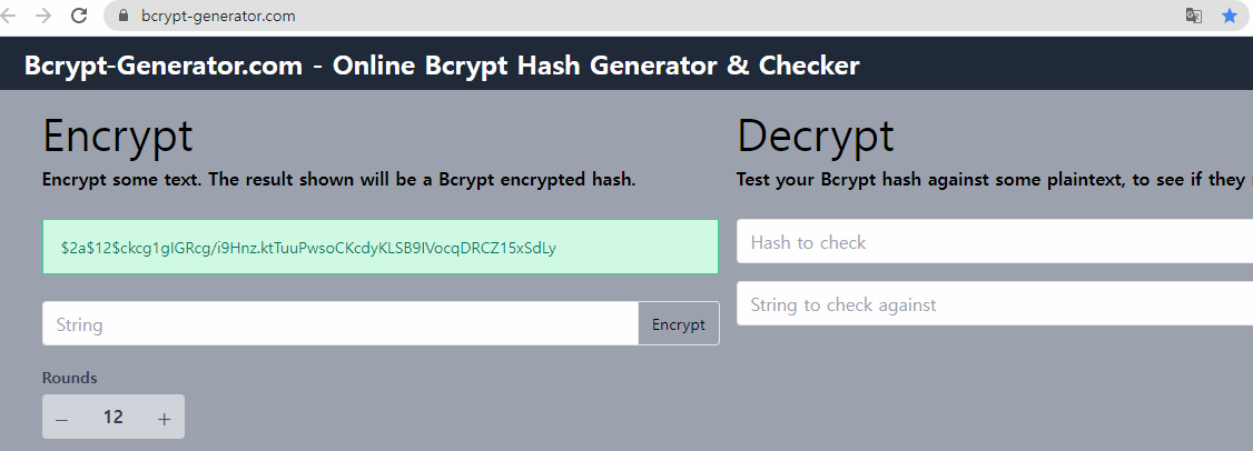 Bcrypt-Generator.com is a online tool to check Bcrypt hashes. You can also use it to generate new Bcrypt hashes for your other applications that require a Bcrypt encrypted string or password