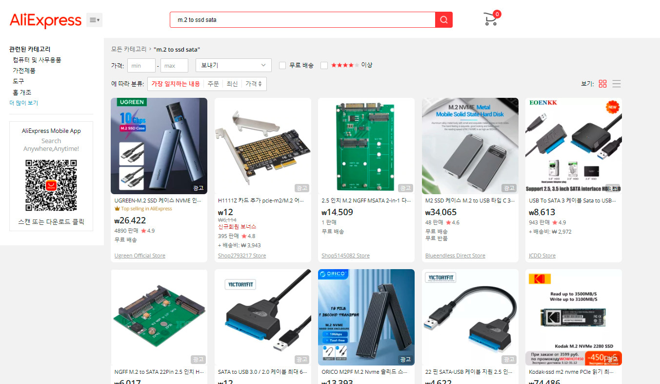 어쨌든 저는 저런 형태는 아니지만 적어도 호환이 가능한 M.2 타입으로 변환 어댑터로 변경하면 길이 보이겠지 하고 구매한 것입니다.