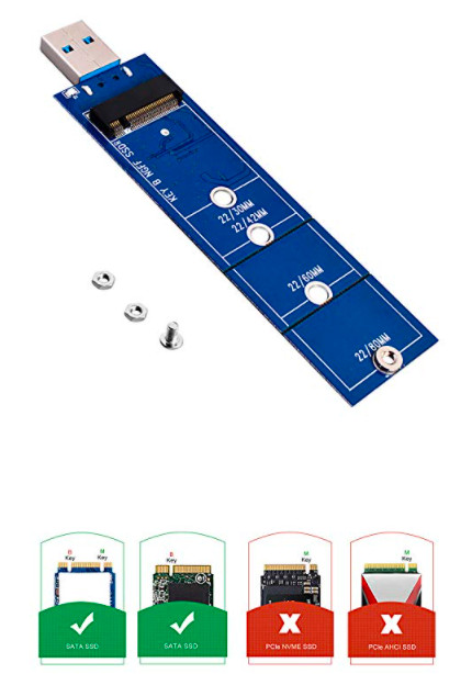 이 모델도 사이즈는 20*110mm로 적합했으나 m.2 ngff B키를 요구합니다.