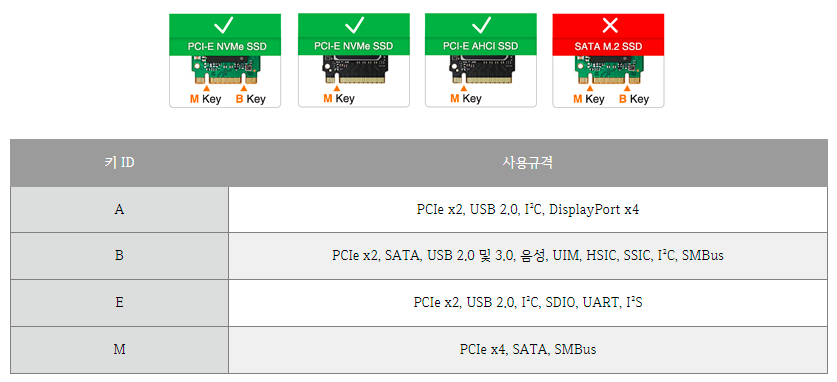 제가 알기로는 같은 M키지만 NVMe M키와 제가 구매한 AHCI M키는 다른 것으로 압니다.