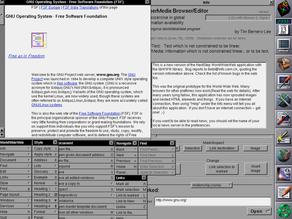 - 1990년 12월24일 웹서버 완성후 서버에 첫번째 도메인 이름을 만들었습니다. 지금도 이 도메인이 남아있습니다.