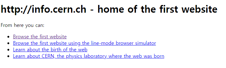 하지만 우리가 흔히 "인터넷" 이라고 하면 떠올리는 각종 웹사이트 등의 시초는 바로 1990년대 팀 버너스 리가 개발한 월드 와이드 웹(World Wide Web)입니다.