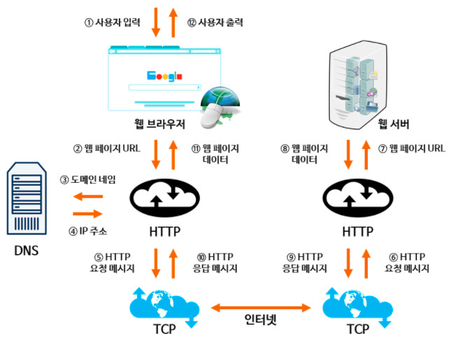우리가 인터넷을 하기 위해 웹브라우져를 열고 특정 URL (www.google.com)을 호출하면