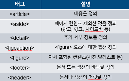 그러나 <table>,<article>등의 태그는 대략 태그 내용의 의미를 유추가능
