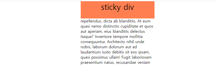 sticky 포지션은 스크롤 전에는 위의 그림처럼 relative 포지션으로 본문의 영역을 침범하지 않고 본문과 같이 움직이다가