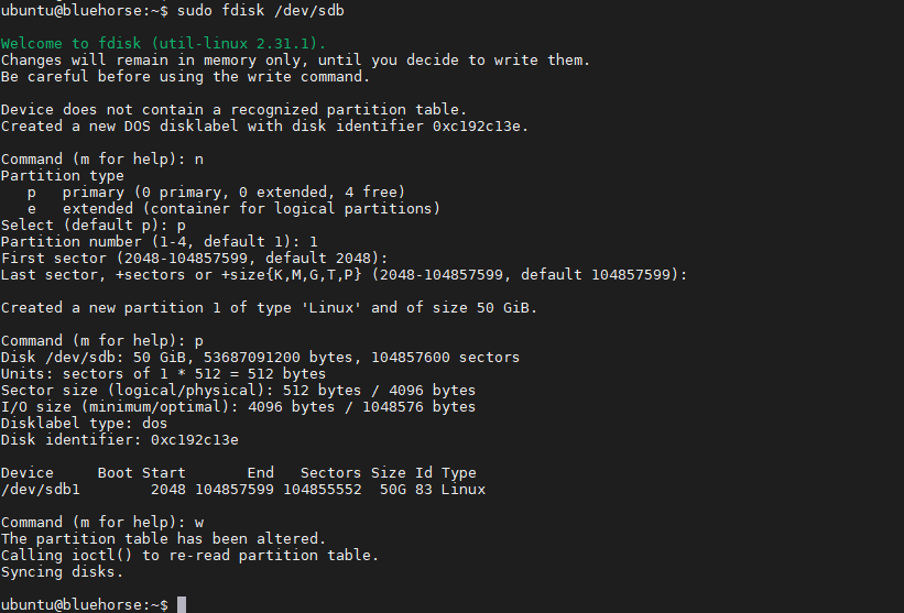 마지막으로 실제 터미널에서 우리가 익숙한 fdisk로 간단하게 파티셔닝과 마운트를 해줘야 합니다.