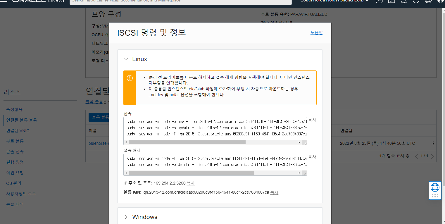 다시 블록볼륨 연결을 위해서