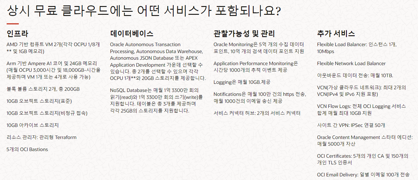 그러면서 이번에 다시 한번 오라클클라우드 무료티어에 대해 최종 현재 버전으로 정리해 보겠다.